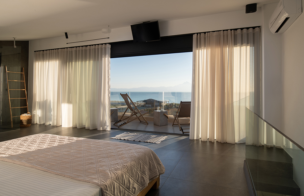 Enjoy the superior living next to the sea with a sublime view of blue-green Aegean water across the mount Athos.