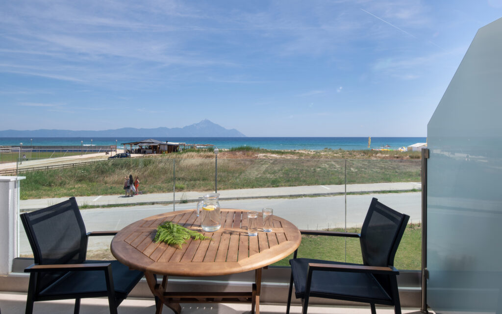 Enjoy the superior living next to the sea with a sublime view of blue-green Aegean water across the mount Athos.